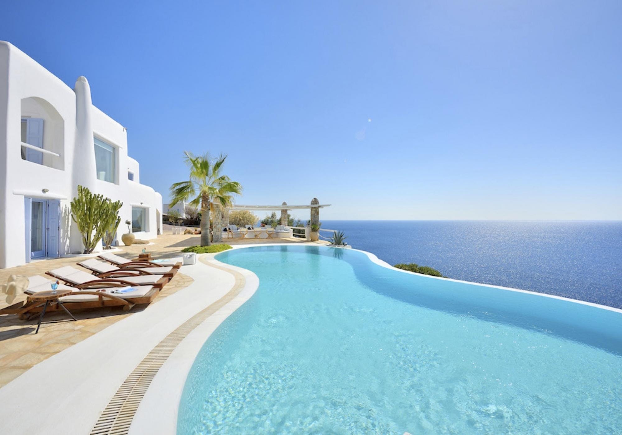 Furthermore, this is one of the few properties on the entire island that is totally immune to adverse weather con- ditions, namely the wind. The villa is so well protected from the “meltemi” (northerly wind) that prevail throughout the summer that you will probably be confused to hear everyone fussing about it (Mykonos can be very windy at times).