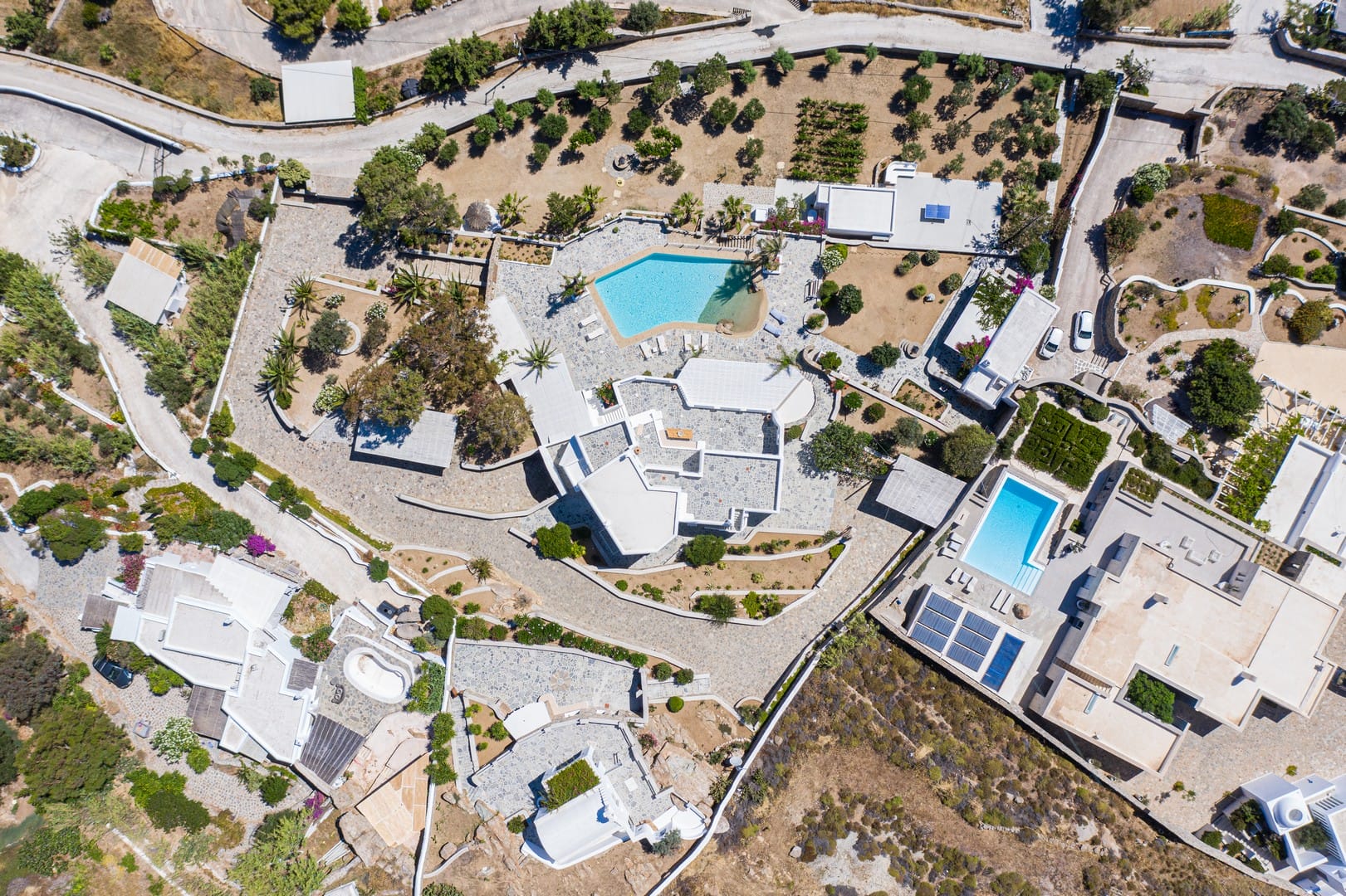 The modern island-chic interiors are the perfect combination of traditional Cycladic architecture and modern luxury. The atmosphere is luxurious yet relaxed and effortless. The large and pristine garden features 100-year-old olive trees, Egyptian palm trees and a vineyard. While located in the cosmopolitan island of Mykonos, offers a calm escape which is perfect for families and everyone who loves peaceful holidays. With stunning views of the Aegean Sea, its super private beach-like pool, and its large outdoor area, provides its guests with an unforgettable lifestyle experience. Gi Estate is also suitable for any kind of events. Is easily accessible from a paved road which enables the organization of weddings and parties.
