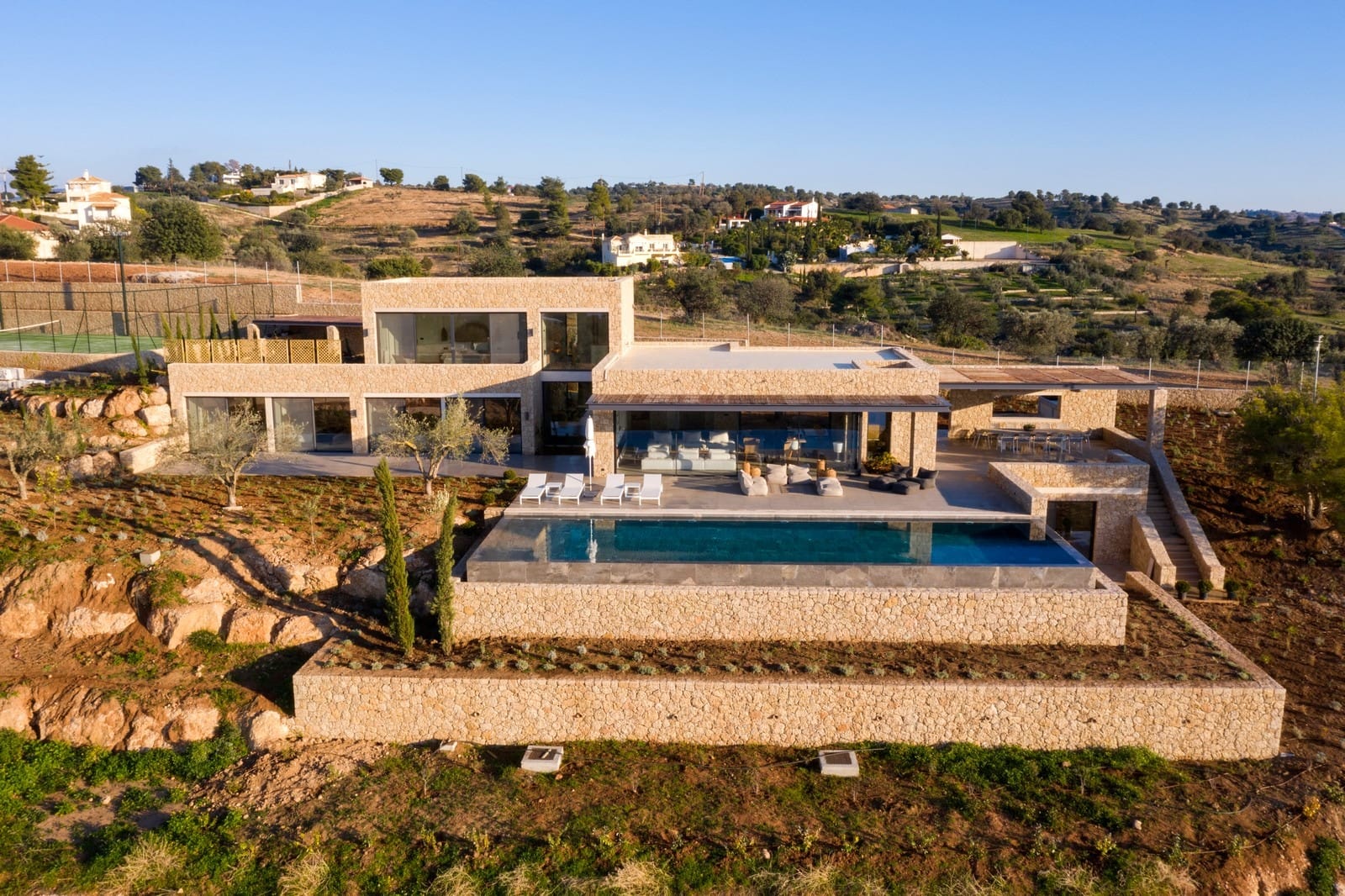 Villa Marcus rental in Porto-Heli, is a combination of luxury, quality and beaty for an ideal destination! Brilliant sunshine and beatiful desing compine to make an unforgettable destination!