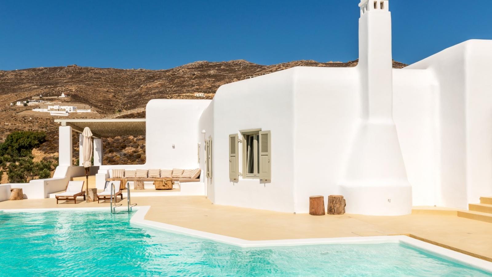 At a distance of 2 km from the picturesque village of Ano Mera, 6 km from the sizzling night life of Chora, and 4 km from the beaches of Elia, Kalafatis and Kalo Livadi, Ftelia Sonorous villa is in the middle of the Mykonian universe.